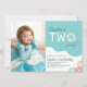 Este convite de aniversário de chá bonitinho foi projetado para uma garota fazendo 2 anos. O texto moderno diz "(Name) é DOIS doces", acentuado com e fosco rosquinha com aspersores e oferece uma foto vertical. Fotografia © Storytree Studios, Stanford, CA