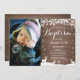 Convite para o Batismo Rustic Winter Veer com foto personalizada. Floco de neve branco. Menino ou Batismo Menina. Primeira comunicação. Cristo. Dedicação Infantil. Fundo Rustic Wood. Campo de Vintage Retro Barn Para mais personalização, clique no botão "Personalizar" e use nossa ferramenta de design para modificar este modelo.
