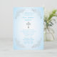 Convite de batismo azul com escroto de prata e detalhes cruzados. Torne este marco memorável adicionando um retrato na abertura de fotos incluída no verso. A sobreposição de texto na parte traseira pode ser removida e substituída por seu texto personalizado. Solicite em papel de cerâmica pérola os resultados mais opulentes.