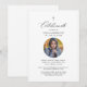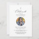 Diga adeus ao seu amado com dignidade e graça usando nossa Foto Minimalista do Convite Funeral Espanhol. É uma maneira simples, mas bela, de comemorar a sua vida e convidar a família e os amigos a honrarem a sua memória. Este convite expele a simplicidade moderna, apresentando um design e um espaço elegantes para uma foto apreciada do seu amado. Em preto e branco clássico, carregar um senso de solenidade e respeito à ocasião. Com a palavra escrita "celebrando", honramos sua vida e o impacto que tiveram em todos nós. Você pode personalizar este convite com o nome, datas e outros detalhes do seu amado para torná-lo verdadeiramente especial e reflexivo de sua jornada única.