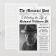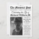 Convide os entes queridos a honrarem uma vida bem vivida com este convite fúnebre para comemoração ao estilo do jornal. Com design de inspiração vintage, texto personalizável e foto opcional, esta placa única define um tom sincero para uma celebração da vida ou do serviço de memorial.