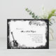 Fundo, guitarra elétrica, clef de triplo, e funcionarios de papel rasgados da música neste convite preto e branco do quinceanera do divertimento (15a festa de aniversário) para melómanos. É mostrado no papel básico, mas em você pode promover a qualquer tipo (metálico o divertimento).