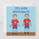 Convite do aniversário que mostra meninos gêmeos com os iate em seu t.shirts