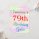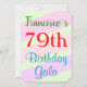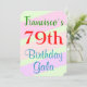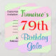 Este design de convite de aniversário divertido apresenta uma mensagem como "A 79ª Bela de Aniversário do Francisco", onde o nome e o número de aniversário podem ser personalizados. Ele também apresenta um fundo divertido, colorido, inspirado na geometria. Os detalhes do evento no verso podem ser personalizados. Poderia ser usado para convidar pessoas para a comemoração ou festa de aniversário de 79 anos de alguém. [~Z0000311]