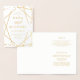 Este convite de casamento na moda apresenta um design geométrico de ouro moderno num fundo branco nítido.