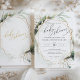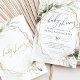 Convite Geométrico Faux Dourado e Chá de fraldas Greenery. As aquarelas brancas e a tipografia moderna complementam a design. Personalize este Convite para Chá de fraldas com os detalhes do seu chá de fraldas de forma fácil e rápida, pressione o botão personalizá-lo para reorganizar e formate o estilo e o posicionamento do texto.