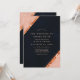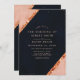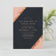 Faça uma declaração ousada com este convite de casamento moderno, com uma combinação impressionante de cobre, rosa-pincel e marinho. Os sotaques geométricos acrescentam um toque contemporâneo, perfeito para casais que amam um design único e sofisticado. A elegante paleta de cores e os detalhes luxuosos definem o tom para uma celebração inesquecível. Ideal para casamentos que buscam uma mistura de estilo chic e talento artístico, este convite certamente impressiona seus convidados.