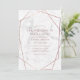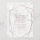 Este elegante convite de casamento combina simplicidade moderna com encanto sofisticado. Com um fundo de mármore e delicados sotaques geométricos de ouro-rosa, é perfeito para casais que desejam uma estética elegante e contemporânea. Adequado para primavera, verão, outono ou casamentos no inverno, este convite captura o estilo do eterno com um toque de luxo, estabelecendo o palco para uma celebração memorável.