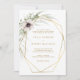 Este convite de casamento geométrico de ouro do eucalipto é perfeito para o seu elegante casamento do boho. Ele foi projetado com simples flores brancas boêmicas e roxas de anêmonas, com cores de água simplistas folhas verdes de sábado e molduras de ouro modernas de inverno. Com a combinação de verde floral branco e verde rústico simples, vocês certamente criam a atmosfera de seus sonhos.