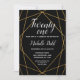 Este convite de aniversário geométrico preto e dourado é o início perfeito de qualquer evento ou ocasião especial.