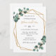 Este convite de casamento geométrico de ouro verde apresenta um quadro elegante com sotaques botânicos frescos, perfeito para casamentos modernos e elegantes. Totalmente personalizável para ajustado de seu estilo exclusivo e tema de celebração.