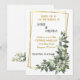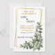 Este convite às folhas verdes tropicais é perfeito para um casamento simples. A design apresenta lindas folhas verdes pintadas à mão, enfeitando um quadro geométrico dourado. Personalize o texto e a mensagem com apenas alguns cliques.