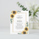 Convite Geométrico de Girassol de Casamento Eucalyptus. Crie um cartão de convite para o casamento do Sunflower Budget, moderno, com este modelo bonitinho com um belo buquê floral rústico, estrutura de efeito de ouro geométrico, com uma tipografia simples moderna. DICA: Cartões de suíte de casamento iguais, como RSVP, programas de casamento, banners, tapeçarias, etiquetas de presentes, placas e outras pegadas de casamento e guloseimas estão disponíveis na coleção abaixo com esta design.