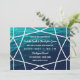 Turquesa e convite de casamento azul adornada com o contorno branco de uma pedra preciosa cortada.