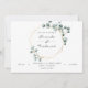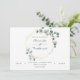 Trendy watercolor eucalipto, convite para casamento de prata com moldura geométrica dourada.