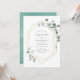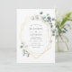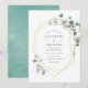 Trendy watercolor eucalipto, convite para casamento de prata com moldura geométrica dourada.