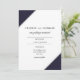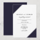 Simples convite de casamento geométrico elegante com texto simples e clássico. O texto centrado nas bordas diagonais de azul marinho e cinza. Para revisar e editar o layout, clique em Personalizar, Editar. Use Cntl. para selecionar e mover várias seções ao mesmo tempo.