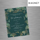 Fundo verde decorado com um padrão de folha de ginkgo. Personalize e adicione seus nomes e detalhes do casamento. Cartas brancas.