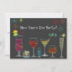 Convide seus amigos e família a comemorar o ano novo no estilo com este convite retro do estilo. O "feliz ano novo" nas línguas em todo o mundo enche os vidros de cocktail na parte dianteira e molda a parte traseira deste convite. Adicione o ano à azeitona no vidro de martini na parte dianteira e na parte traseira para um toque adicionado do divertimento. Um convite colorido e divertido. Design original pela mistura variada de coruja de noite, 2013.