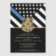 Honre a dedicação e o trabalho de duro de um novo oficial de polícia com este convite de formatura policial personalizável. Apresentando um crachá policial e a bandeira da polícia com riscas brancas e pretas e uma orgulhosa linha azul fina, esta design simboliza força, serviço e sacrifício. O convite é personalizado com o nome do formando em letras douradas, fazer-o como uma lembrança memorável para amigos, familiares e colegas oficiais. Perfeito para celebrar a graduação, promoção ou marco de uma academia de polícia na carreira de um futuro oficial. Convide seus convidados em estilo e mostre suporte para o membro mais novo da comunidade de linha azul fina.