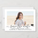 Compartilhe as notícias alegres da sua próxima festa de formatura, assim como uma imagem favorita com estes simples minimalistas modernos, salvem os convites magnéticos de data. O texto é simples de personalizar para incluir o nome do formando, o ano da classe, a escola e outros detalhes do evento. (DICA DE IMAGEM: Uma maneira fácil de centralizar uma foto exatamente como você deseja é recortá-la antes de carregá-la no site do Zazzle.) Design apresenta caligrafia de script de estilo manuscrito, na moda vintage art deco inspirou tipografia e 1 foto de sua escolha, como uma fotografia de mais velho ou imagem da cerimônia inicial. Este elegante cartão de anúncio de graduação é uma maneira moderna e chique de começar sua celebração especial. Parabéns ao formando!