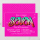 Um convite de graffiti cor-de-rosa brilhante e desorganizado adequado para uma criança de sete 7 anos.