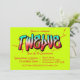 Um convite de grafite neon verde brilhante e desorganizado, adequado para um menino de doze 12 anos.