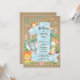 Convite grande do aniversário dos meninos da selva bonito um que caracteriza um número grande azul um cercado por animais, por macaco, por girafa, por leão, por elefante & por zebra do safari em um fundo popular de kraft.