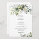 Convite Greenery de Casamento Convidado para Casamento Greenery. Este convite de casamento na moda e elegante apresenta uma linda coloração d'água pintada manualmente Greenery. Localizar itens correspondentes na Coleção de Verduras Fluviais Eucalyptus Eucalyptus.
