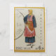 Um selo postal grego do vintage com uma grande foto da senhora tradicional do vestido para convites de festas