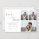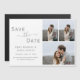 Compartilhe seu amor com esta Imã salve a data de 3 fotos minimalista. Com sotaques prateados elegantes e um layout limpo de colagem de fotos, é perfeito para estilos de casamento elegantes, modernos ou eternos que focam em sua história pessoal.