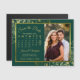 Estes belos cartões magnéticos esmeraldas verdes e dourados são a forma perfeita de permitir que a sua família e amigos saibam salvar a data do seu próximo casamento. O elegante design apresenta a sua dentro fotográfica de uma estrutura falsa de folha de alumínio de ouro com delicadas curvas e espirais nos cantos. Há uma inscrição no roteiro de ricos e um calendário personalizável mostrando seu mês de casamento com um coração ao redor do seu dia especial. Conveniente e prático, este cartão é certamente agradável.