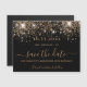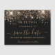 Uma cinta e uma moda Salve o cartão magnético Date para uma festa de aniversário. Um fundo preto decorado com brilho sujo de ouro, faíscas. Personalize e adicione uma data e um nome. Letras coloridas com ouro. O texto: Salvar a Data é gravado com um script de estilo com letra de tendência grande com alternâncias.