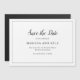 Imã salve a data moderna em preto e branco minimalista com os detalhes do evento cercados por uma fronteira. A fonte e a borda podem ser alteradas para qualquer cor desejada clicando no botão "personalizar". Uma simples Imã salve a data não fotográfica para um casal que deseja Salvar a Data sem fotos.