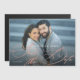 Este bonito salvamento da data apresenta um roteiro romântico e uma foto grande. A caligrafia Elegante rosa gold diz "Save the Date" (Salvar a data) e sobrepõe uma foto de sangue de cheio, com orientação para a paisagem. Os nomes dos casais, a data do casamento e a localização do casamento estão escritos em branco.