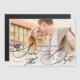 Este bonito salvamento da data apresenta um roteiro romântico e uma foto grande. A caligrafia elegante diz "Salvar a Data" em preto e sobrepõe uma foto de sangue de cheio, com orientação para a paisagem. Os nomes dos casais, a data do casamento e a localização do casamento também são escritos em preto.