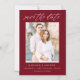 Anuncie seus próximos nupciais em estilo com nosso Elegant Script para salvar o ímã de fotos de data. A elegante imã salve a data apresenta "salve a data" em um roteiro branco moderno de caligrafia, com sua foto de noivado mostrada abaixo sobre um fundo burgundy. Personalize a imã salve a data de fotos adicionando seus nomes, data do casamento e local do casamento.