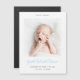 Este cartão magneta de anúncio de nascimento de fotografias, simplesmente encantador, apresenta um design contemporâneo que permite personalizá-lo facilmente de acordo com o seu estilo. No topo, acrescentamos "OLÁ, MUNDO" mas, por favor, sintam-se livres para mudar isso para o que quer que lhe agrade, seja "BEM-VINDO" ou "INTRODUÇÃO", etc. Este texto está preto, e você pode mudá-lo se quiser. Ao escolher um roteiro para o nome do seu bebê, estávamos procurando por algo informal, com personalidade, mas também um fluxo ordenado que é fácil de ler, e encontramos algo que amávamos. Adicionamos um tom vivo de azul bebê para acentuar ainda mais esta parte do design. Dito isto, você pode mudar a cor e a fonte deste ou de qualquer outro texto de acordo com o seu gosto. Se preferir uma aparência mais minimalista, você pode excluir sem substituir qualquer um de nossos estados de amostra - talvez não queira incluir a hora do dia ou a duração, por exemplo. A cor padrão do texto abaixo do nome é cinza escura. Use as ferramentas intuitivas de design e sua foto favorita e sua inspiração para personalizar este cartão magnético de anúncio de nascimento personalizado e torná-lo exclusivamente seu!