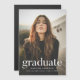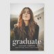 Imagem simples do anúncio de graduação com a foto vertical do formando com o "formando" exibido em letras brancas modernas. Personalize o anúncio de graduação de fotos adicionando o nome do formando, o nome da escola e o ano de graduação.