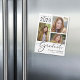 Anúncio de graduação da manutenção do cartão magnético elegante com uma colagem de fotos de 3 fotos e "Formando" em uma tipografia de na moda. Acrescentar o nome do formando, ano de aula e escola ou universidade na tipografia moderna.