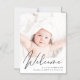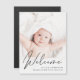Anuncie o nascimento do seu bebê com este ímã de manutenção com a sua foto e "Bem-vindo", que ficou no topo, num roteiro elegante. Por baixo, você pode adicionar o nome dele ou dela, data de nascimento e estatísticas de nascimento na tipografia moderna.