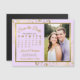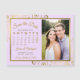 Estes belos cartões magnéticos púrpura pálida ou lilás e ouro são a forma perfeita de deixar que a sua família e amigos saibam salvar a data do seu próximo casamento. O elegante design apresenta a sua dentro fotográfica de uma estrutura falsa de folha de alumínio de ouro com delicadas curvas e espirais nos cantos. Há uma inscrição no roteiro de ricos e um calendário personalizável mostrando seu mês de casamento com um coração ao redor do seu dia especial. Conveniente e prático, este cartão é certamente agradável.