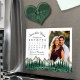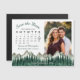 Estes belos cartões magnéticos são a forma perfeita de deixar a sua família e amigos saberem salvar a data do seu próximo casamento. O design rustic apresenta sua foto atrás de uma faixa aquática de picos de montanha com uma floresta de pinheiros verdes no primeiro plano. Há uma inscrição no roteiro de ricos e um calendário personalizável mostrando seu mês de casamento com um coração ao redor do seu dia especial. Conveniente e prático, este cartão é perfeito para um casamento de destino em um local de alto país.
