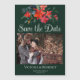 Este maravilhoso Natal Salve a data convite magnético apresenta uma bela aquarela de flores de poinsettia vermelha e folhas de pinho para as festas sobre sua foto de noivado. Um elegante imã de inverno, convidado com poinsettia floral festiva a verde.