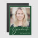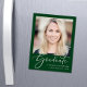 Comemore seu formando com este cartão magnético de anúncio de graduação verde com "Formando" em uma elegante escrita branca e sua foto e seu nome, escola e ano de aula em uma simples tipografia branca moderna.