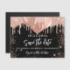 Um magnético giro e tradicional Salve a data para uma festa de aniversário de 18 (ou qualquer idade). Um fundo preto decorado com rosa dourado falso brilho e balões. Personalize e adicione uma data e nome/idade. O texto: Salvar a Data é gravado com um script de estilo com letra de tendência grande.