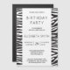 Convide amigos e família de estilo e dê o tom para seu dia especial com este encantador convite. Design apresenta padrão de zebra em preto e branco.