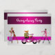 Festa divertida, convidada para ir embora, moças de bicicleta e bagagem personalizam-se para qualquer evento ou aniversário.