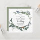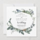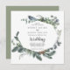 Este convite de casamento informal, verde de inverno é perfeito para um casamento elegante. A design de outono ou inverno moderna apresenta uma elegante paisagem verde-aquática e folhas de eucalipto de oliveira com uma sensação de feriado rústica.