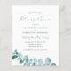 Um primavera minimalista moderno ou um convite de janto de ensaio do barato BUDGET para o casamento boêmico de Verão, com a aquarela eucalyptus greenery Foles e um roteiro de caligrafia de estilo manuscrito de na moda trendy. ++++++++++ Fácil de personalizar com seus detalhes! ++++++++ Adequado para jantadas modernas de jardim de Verão de primavera ou de ensaio elegante de quintal. ++++++++++++++++++++++++++++++ LEIA ISTO ANTES DE COMPRAR! Este é um cartão de barato de orçamento impresso em uma folha de papel (cada folha tem um cartão). +++ Para obter a melhor qualidade de preço, nosso conselho é escolher o tipo de papel Semi-Gloss (é espesso o suficiente para ser usado para papelaria) +++ Se você precisar de envelopes, escolha a OPÇÃO ENVELOPE. ++ Verifique duas vezes todas as informações e a ortografia do seu texto porque você receberá exatamente o que você vê - ninguém mais verificará nada antes de imprimir. +++ Esta placa foi projetada para o tamanho de 4,5" x 5,6". Caso você escolha outro tamanho do cartão e o texto saia da página, tudo precisa ser corrigido antes de adicionar o produto ao carrinho. Peça ajuda ao Serviço de Design ao Vivo.